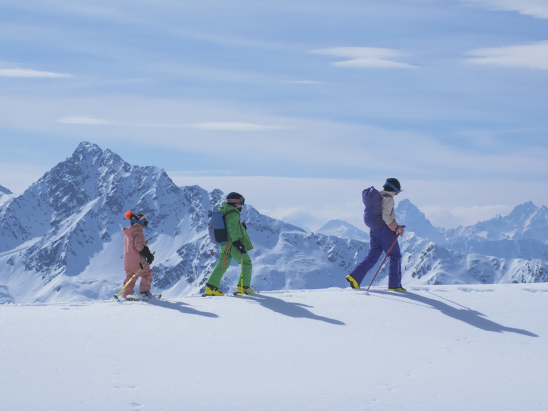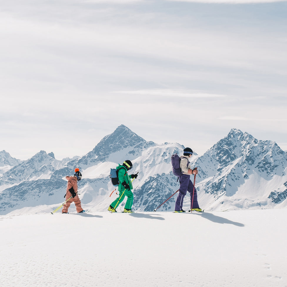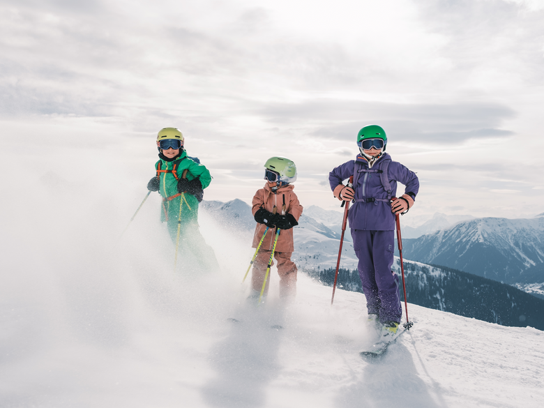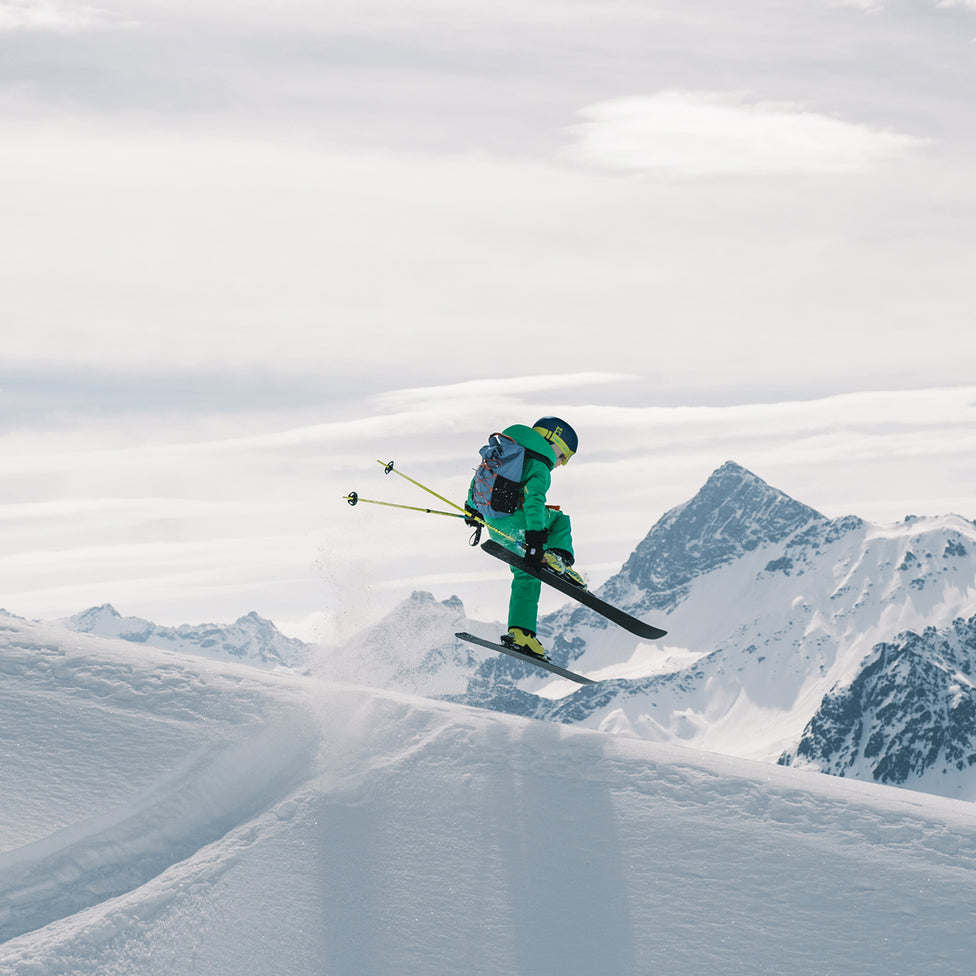 For adventurous little skiers for whom no powder is too deep and no weather too cold, we have developed the "Crème de la Crème": the high-performance 3-layer Turas snow jacket and Dait snow pants.