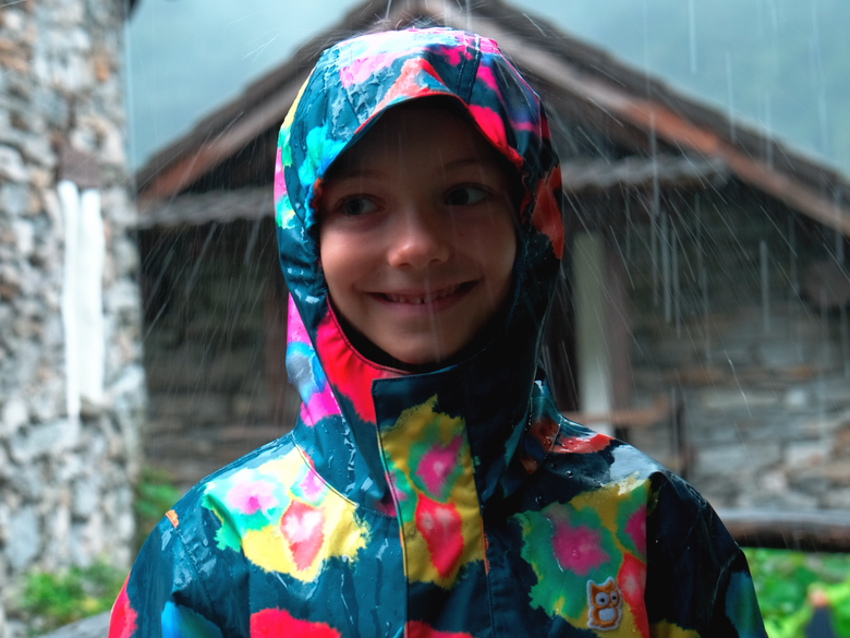 Our rain jackets for kids have a water column of up to 15,000 mm, which means they can even withstand a waterfall. And why not, actually? If your hike takes you past a waterfall, put them to the test! Moreover, they’re windproof and keep cold air out on cool days. Thanks to a breathable membrane, moisture (from sweat, for example) doesn’t get trapped inside, so kids don’t get cold after lots of wild playing.