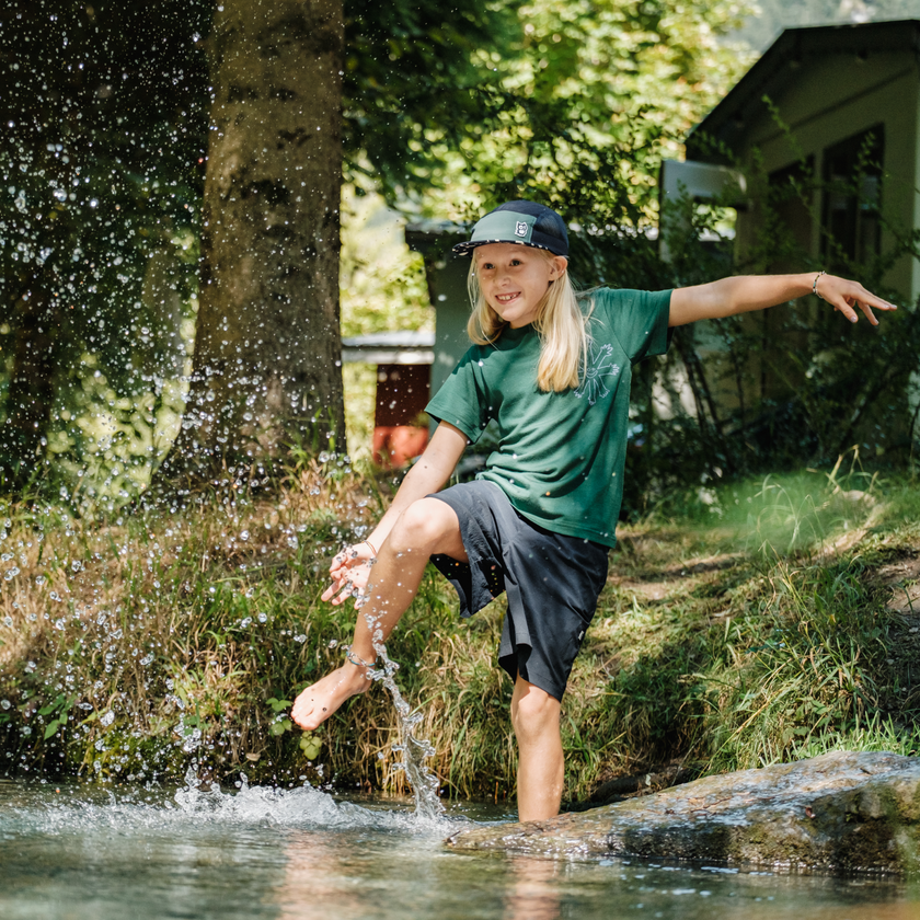 Still, for life on Earth in summer, we really have pulled it off: Linn ist not only super comfortable because the shorts are stretchy, practical thanks to two pockets and a hidden pocket with a key holder, and environmentally friendly thanks to 94% ECONYL® (a material made from recycled nylon) – Linn is also a bathing suit. Yes, really! Simply remove the valuable collection of your treasures from the pockets (important!) and hop into that alpine lake. Afterward, the shorts will dry before the next set of stones has been collected. (Note to our product developers: Why did we work so hard to make the belt extra easy to open? Kids don’t even have to take these shorts off….)
