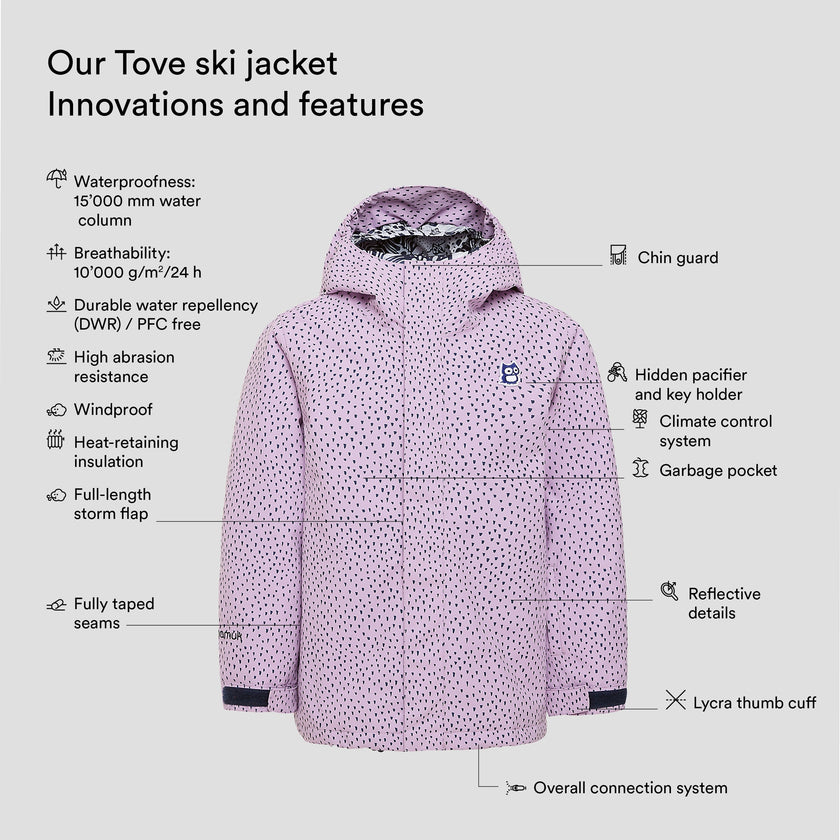 Our beloved Mission snow jacket is jam-packed with all our know-how on the subject of fun in the snow, in all its shapes and forms. We truly couldn’t pack it with more, we thought to ourselves – but what about less? Enter: Tove.