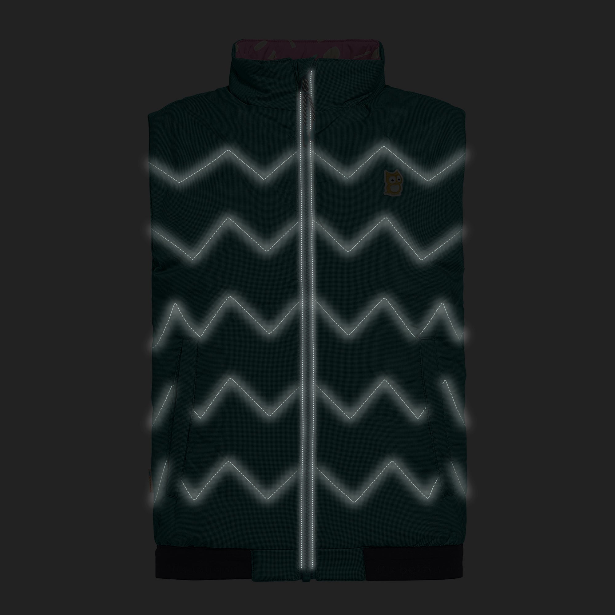 When reversed, large pockets are available to collect and store all kinds of things. Turned inside out again, all the treasures disappear from prying eyes. With a small cord and an integrated secret compartment, even the smallest and most valuable objects stay in their place. No matter which side you wear it on: The vest’s soft and biodegradable* Primaloft® Bio™ insulation made with 100% recycled material, keeps the body comfortably warm, while the reflective threads, woven in 360° throughout the vest, ensure visibility from every side.