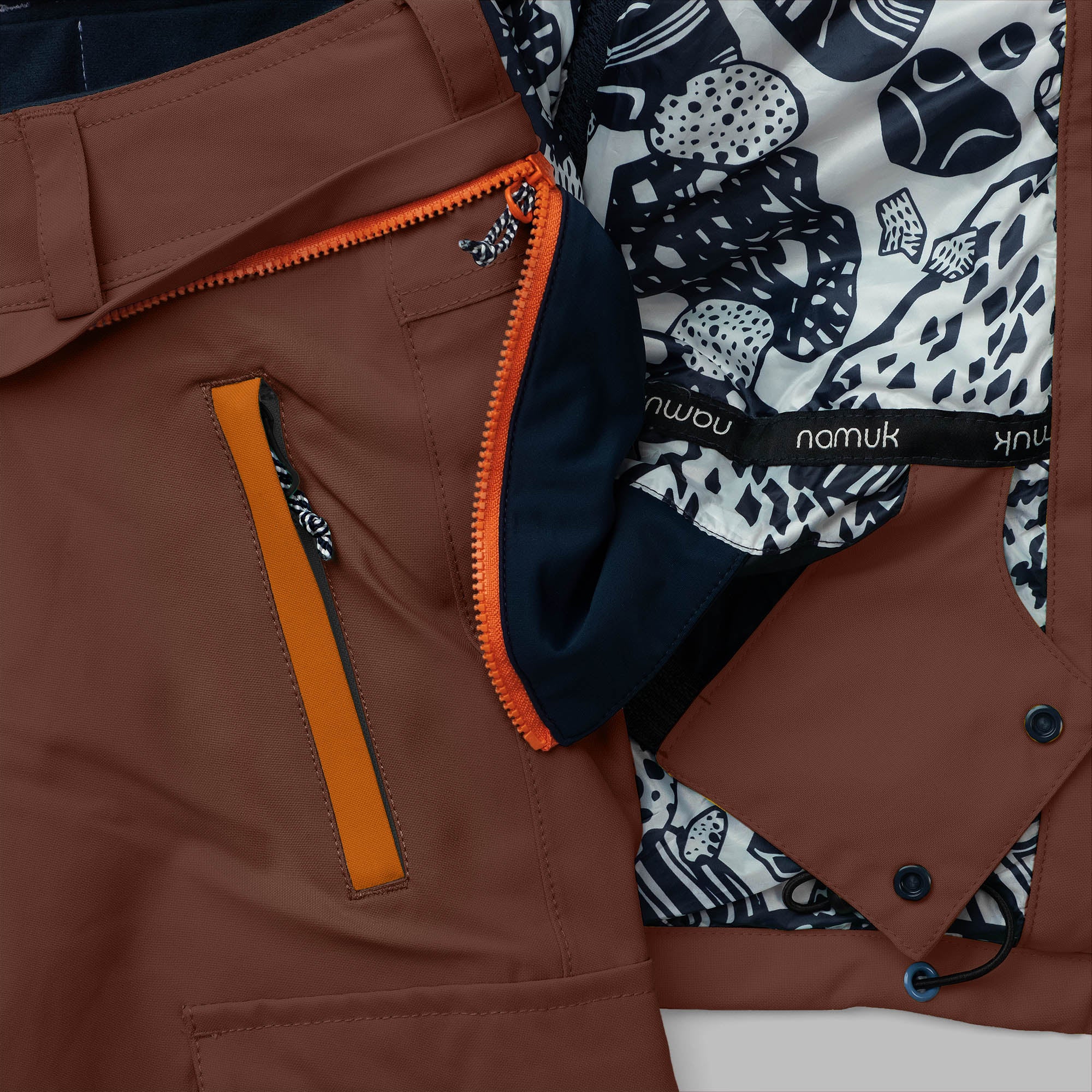 Mission complete? Not quite. This is namuk gear we’re talking about, after all: Features such as the hidden key holder and built-in pocket for garbage are just as important as the Overall Connection System, which ensures that the jacket can be combined with any pair of namuk snow pants. It’s almost enough to make you feel sorry for anyone who’s too big to wear one.