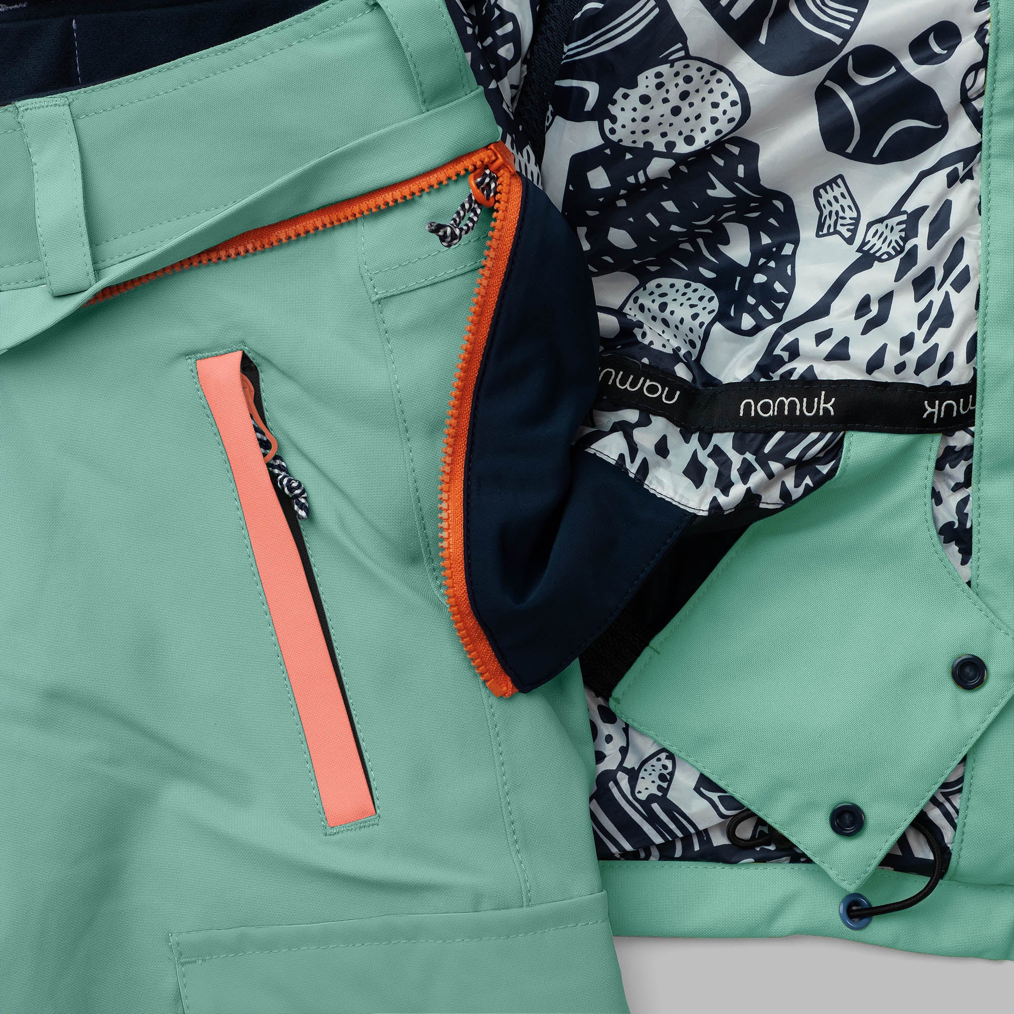 Mission complete? Not quite. This is namuk gear we’re talking about, after all: Features such as the hidden key holder and built-in pocket for garbage are just as important as the Overall Connection System, which ensures that the jacket can be combined with any pair of namuk snow pants. It’s almost enough to make you feel sorry for anyone who’s too big to wear one.